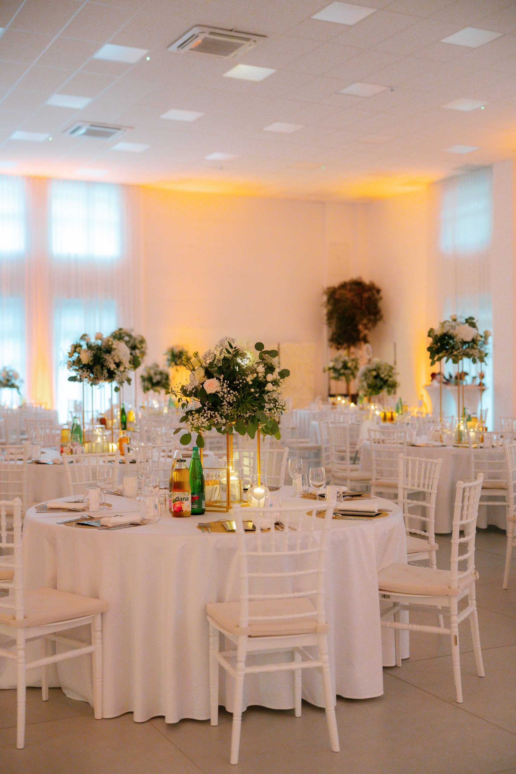 Dvorana razpolaga z 200 belimi banketnimi stoli in 26 okroglimi mizami z elegantnimi belimi prti, kar vam omogoča organizacijo porok, zabav, rojstnih dnevov in raznih družbenih dogodkov. Civilni obred lahko poteka na čudoviti jasi pred dvorano ob bregu reke Krke, s postavitvijo 60 prozornih stolov, mizo za obred in z lokom, ki se ga lahko okrasi s cvetjem.