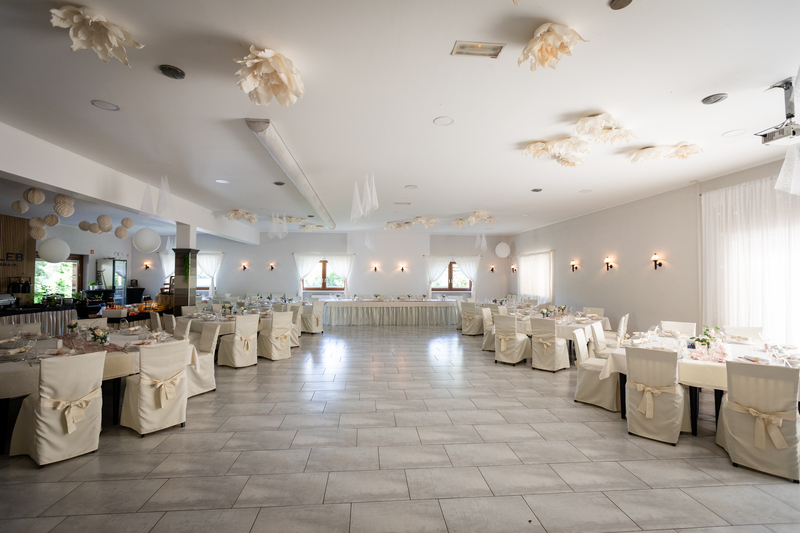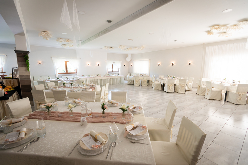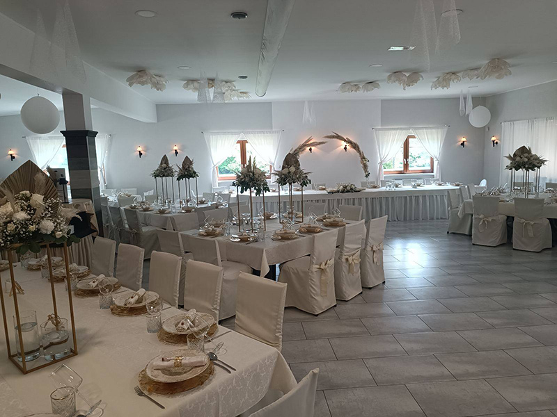 Nudimo možnost zunanjega sprejema s hrano in pijačo ter pogostitev v prekrasni dvorani. V veselje nam bo z vami deliti najlepši dan.