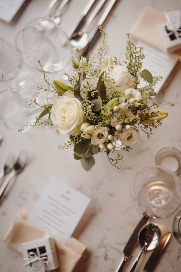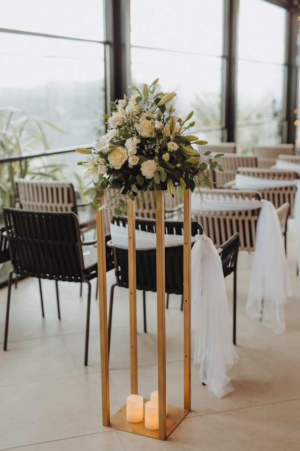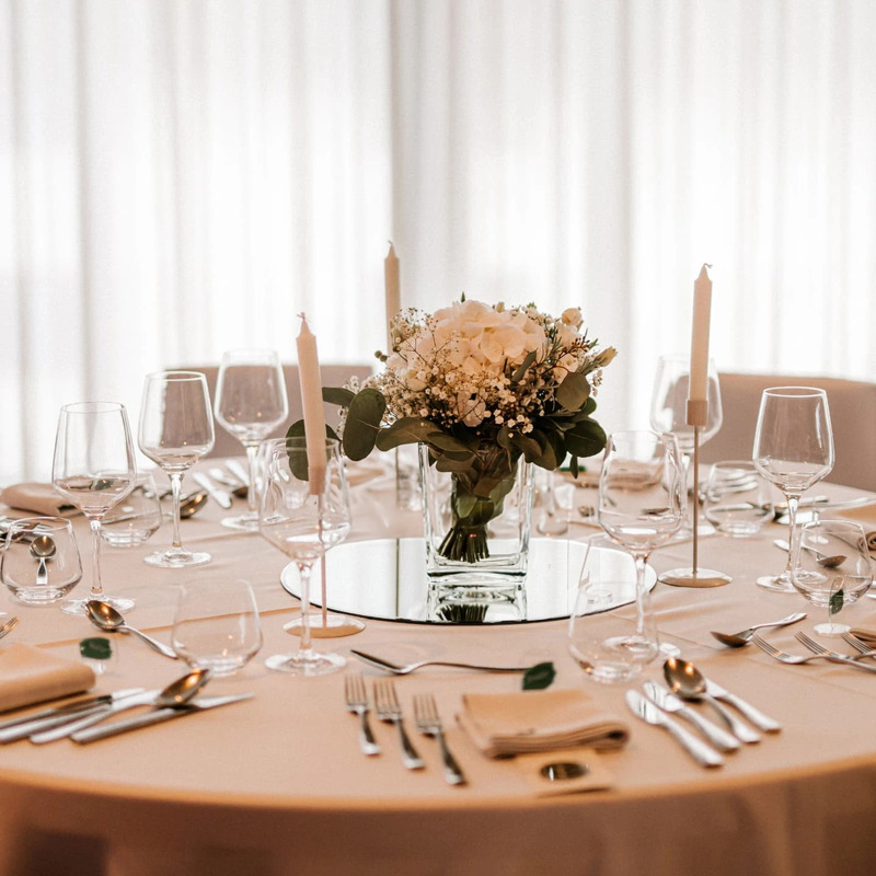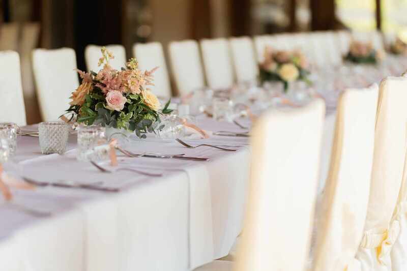 Poskrbimo za celotno dekoracijo omizja in civilnega obreda, kjer se prepletajo romantika, eleganca in razkošje. Cvetlični aranžmaji nežno dopolnijo prostor in ustvarijo toplo, čutno vzdušje. Vsaka miza postane del poročne zgodbe. Omizje povezuje vse dele poročne dekoracije v harmonično celoto. Ustvari občutek razkošja in intimnosti hkrati. Gostje začutijo posebno pozornost in toplino.