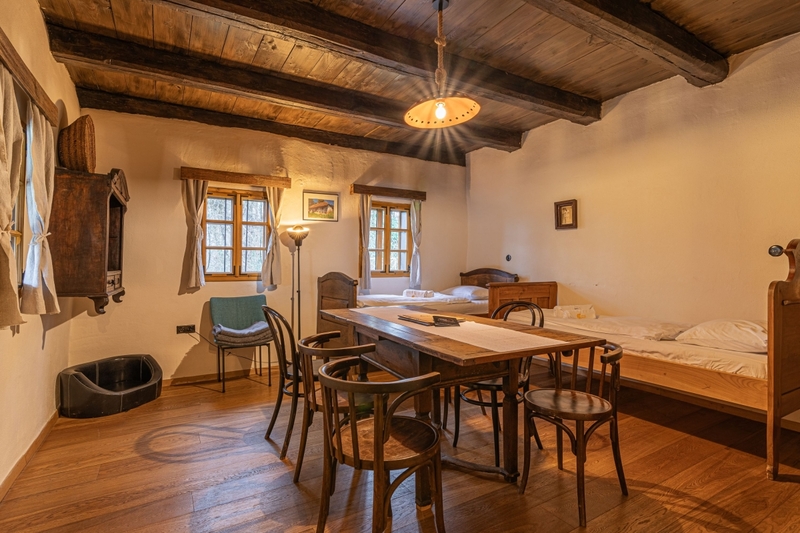 Tradicionalna prekmurska hiša narejena iz naravnih materialov, s talnim ogrevanjem in lončeno peč za kvalitetno bivanje in udobje.