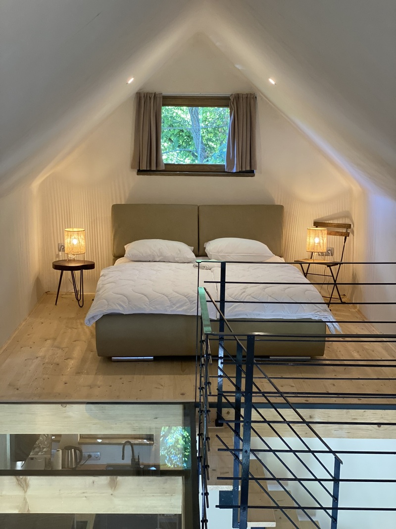 Je ena izmed redkih hiš, pri kateri je glavno pri gradbenih materialih vlogo igral konopljin pezdir. Je majhna in intimna, za 2 osebi.