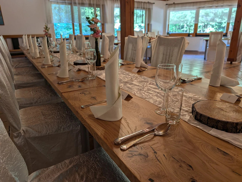 Pri nas ste več kot le gostje – postanete del družine, kjer so pozornost, domačnost in vrhunska postrežba samoumevni. Za tiste, ki sanjate o poroki v sproščenem in domačem ambientu, nudimo čudovito kulinarično izkušnjo, ki bo ustvarila nepozabne spomine. Na voljo so tudi **catering storitve**, ki omogočajo, da vrhunske jedi iz naše kuhinje uživate kar na svoji lokaciji. Pripravimo hrano po vaših željah in poskrbimo za brezhibno izvedbo dogodka. Imamo posebno, namensko opremo in inventar ter znanje, 10+ let izkušenj v sodelovanuj z najboljšimi cateringi v Sloveniji.
