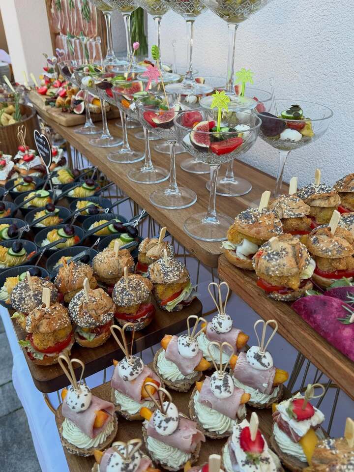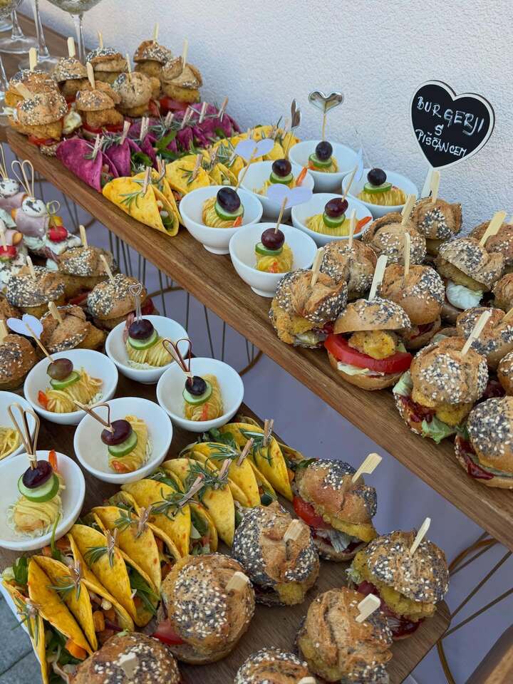 Ponujamo pester izbor skrbno pripravljenih mini prigrizkov, ki bodo navdušili vaše goste in poskrbeli za sproščeno, a elegantno vzdušje na vsakem dogodku.