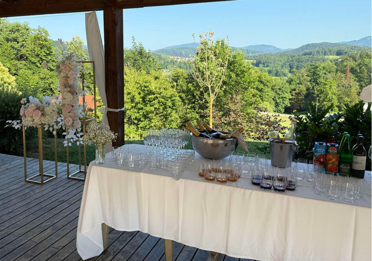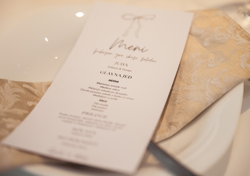 Oblikovali smo all inclusive poročni meni, ki združuje vrhunske okuse in domačo kulinariko. Izbrane jedi in pijače z veseljem prilagodimo vajinim željam, da bo praznovanje povsem po vajinem okusu.