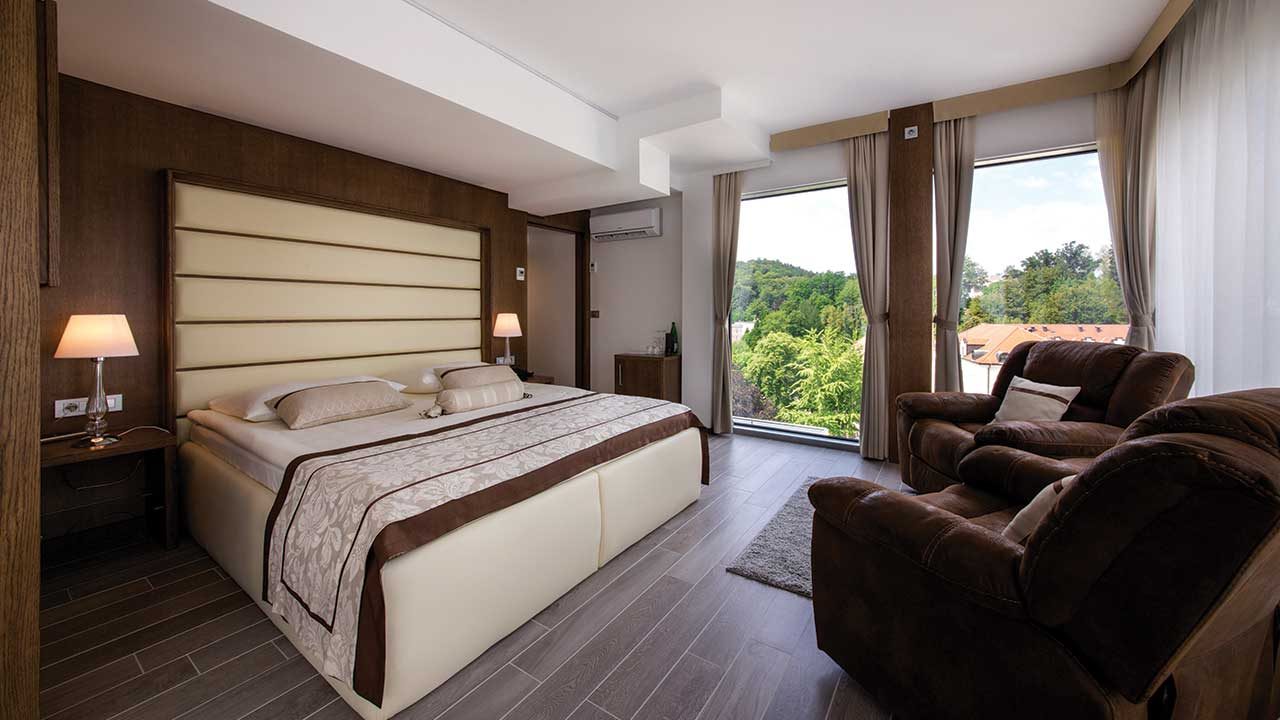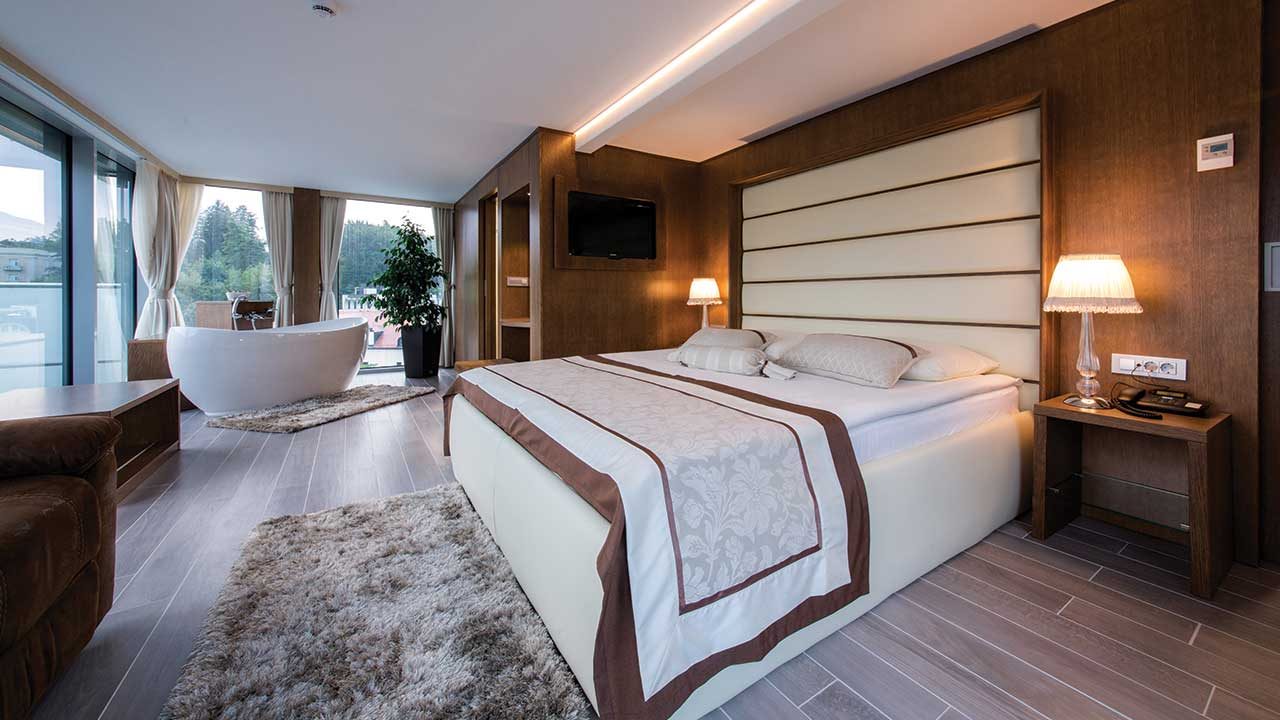 Za romantično bivanje ali poseben oddih so na voljo Panoramic suite-i s čudovitim panoramskim razgledom na mesto in okolico ter prostorno notranjostjo s samostoječo kadjo.