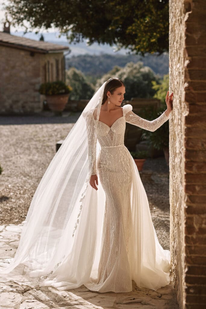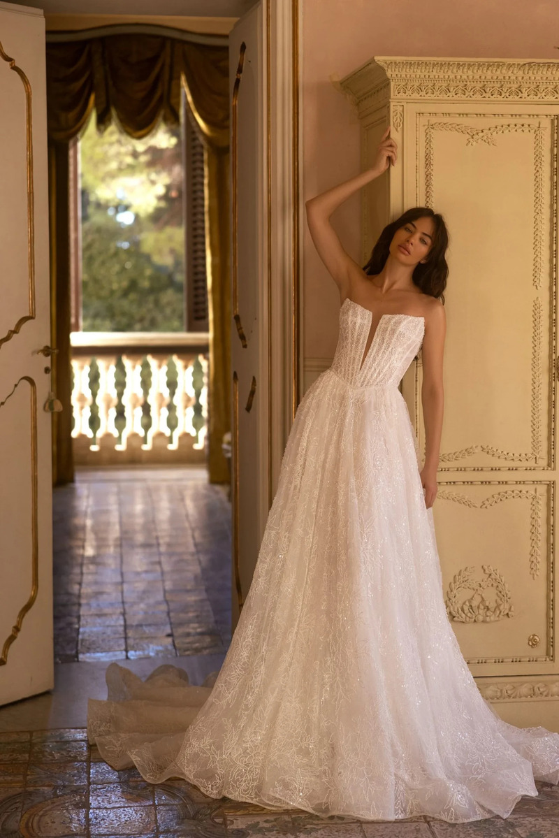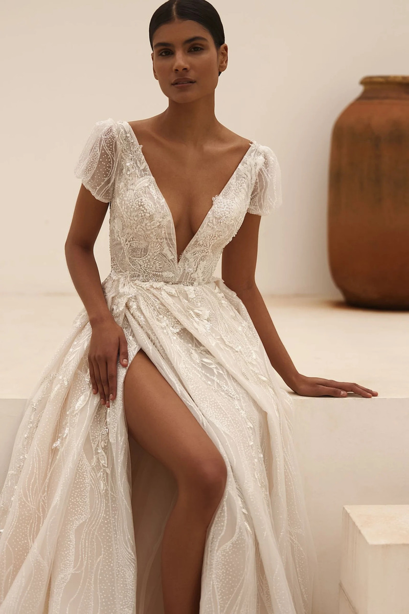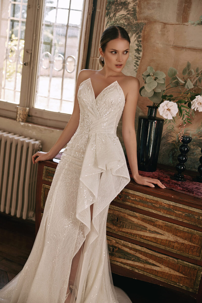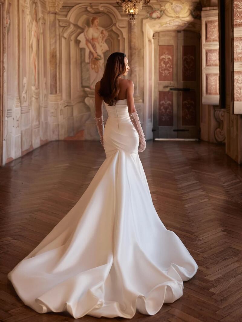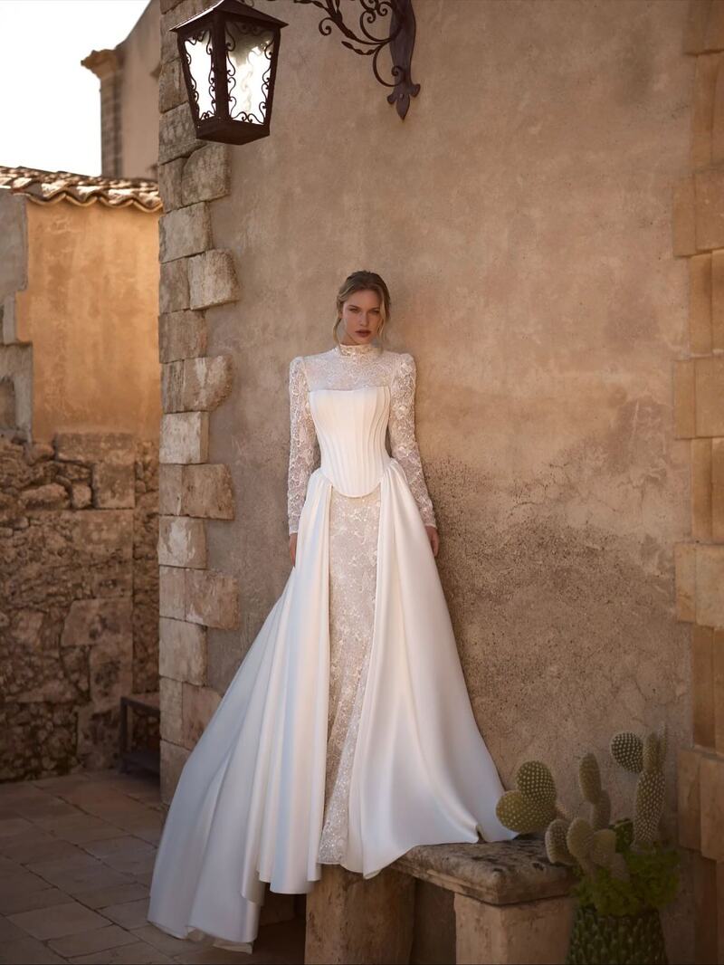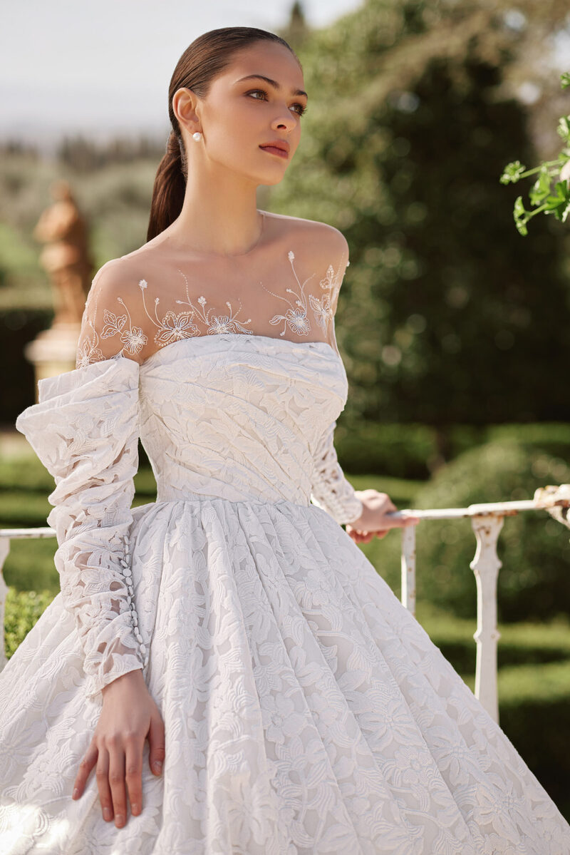 Vsaka poročna obleka nosi svojo zgodbo — zgodbo linij, ki objamejo silhueto, tkanin, ki nežno plešejo ob vsakem koraku in detajlov, ki odražajo sanje neveste. Od klasičnih A-linijskih modelov, ki ustvarjajo brezčasno eleganco, do razkošnih princess krojev, ki prebudijo čarobnost pravljice. Sirena kroji poudarijo ženstvenost in samozavest, medtem ko boho kreacije iz lahkotnih čipk pripovedujejo zgodbo svobode, naravne lepote in nežnosti.