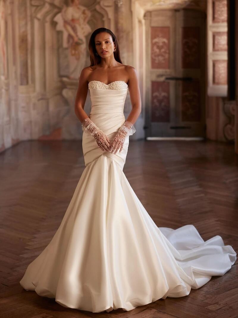 V svetu poročnih sanj zažarijo imena velikih mojstrov mode, katerih kreacije slovijo po popolnih krojih, vrhunskih materialih in umetelnih detajlih. Od prestižnih svetovnih hiš do unikatnih, ročno oblikovanih modelov — vsaka obleka nosi del njihove vizije, strasti in ljubezni do popolnosti. Ko nevesta stopi pred ogledalo in najde obleko, ki je ustvarjena prav zanjo, se zgodi nekaj neponovljivega — trenutek, v katerem se srečata moda in čarobnost, eleganca in srce.