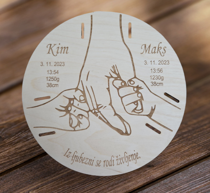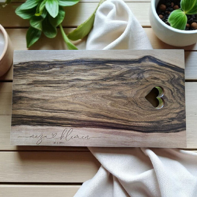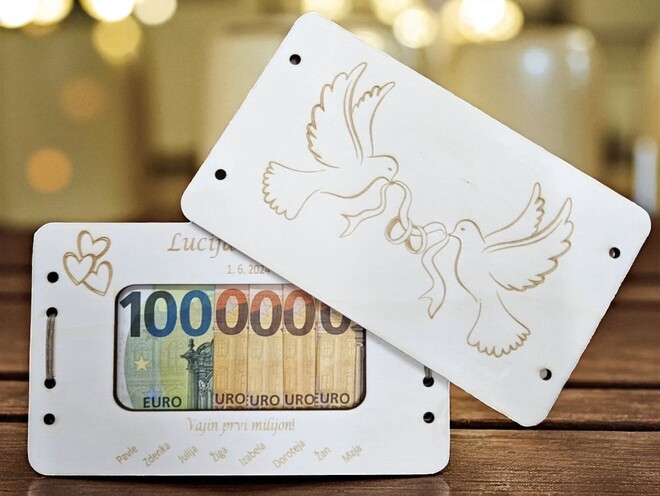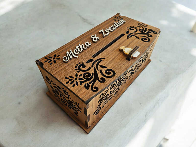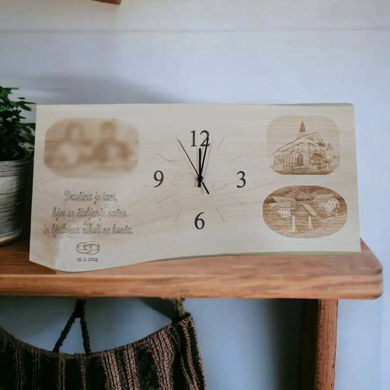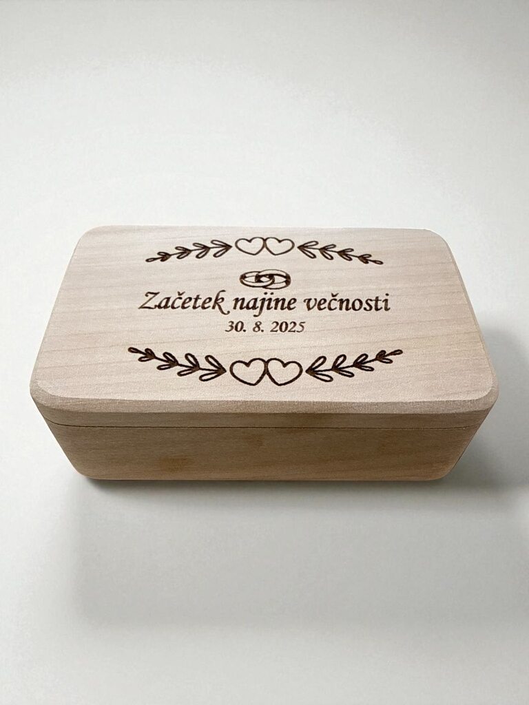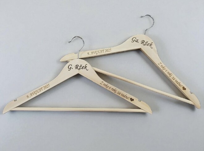 Leseni izdelki dajo na poroki prav poseben čar. Za vajino poroko vam pripravimo table dobrodošlice, toperje, lesene škatljice za želje, lesene srčke kot darilca za svate, deske z vajini imeni, naprsnike, nakit in še mnogo drugih stvari. Idej nam nikoli ne zmanjka. Na vajino željo vam lahko vgraviramo želeno vsebino.