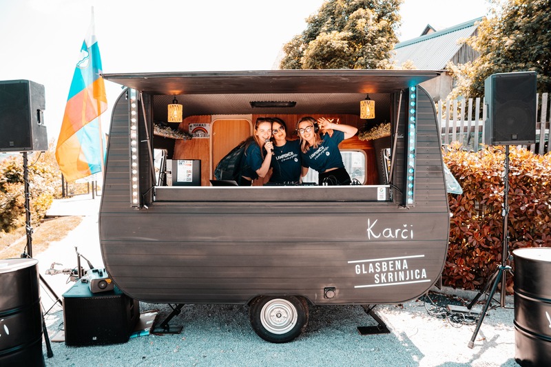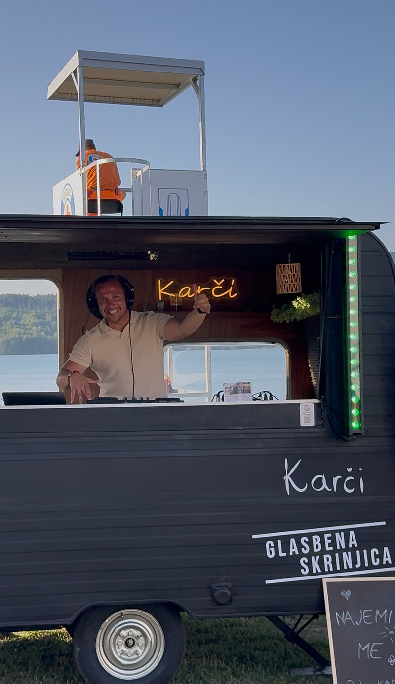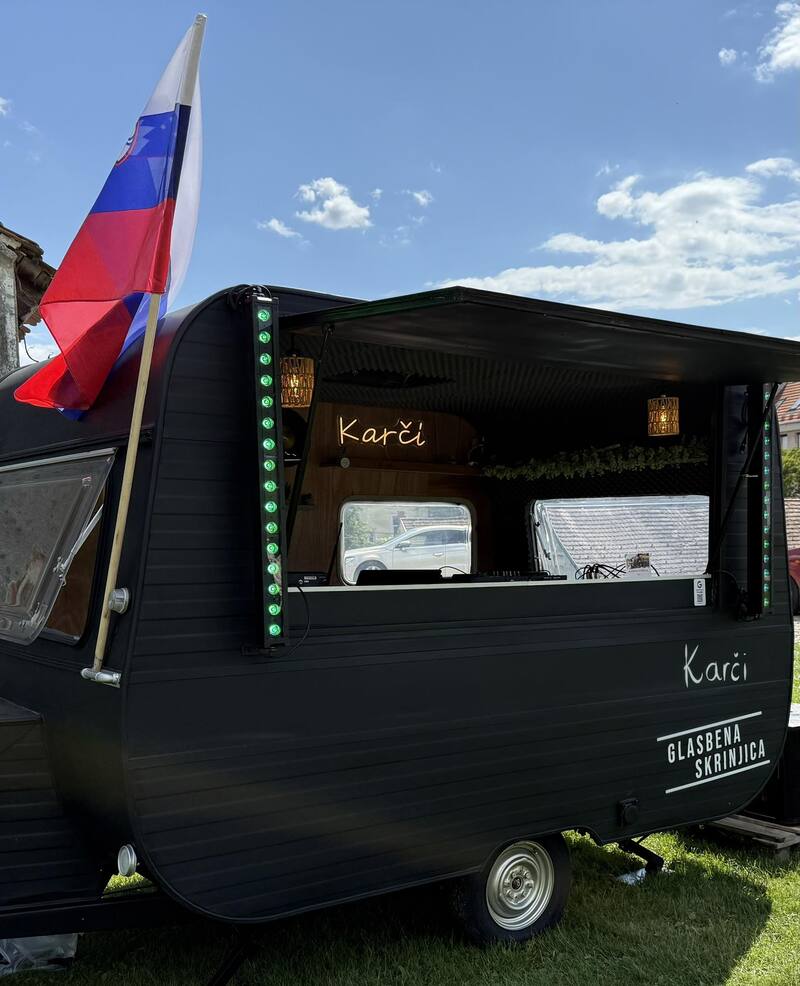 Karči - glasbena DJ skrinjica je mobilna glasbena rešitev, ki na vašo prireditev prinese vrhunsko ozvočenje, profesionalno svetlobno opremo in edinstveno zabavno doživetje. Prikolica je popolnoma opremljena in pripravljena na vse vrste dogodkov – od porok, rojstnih dni, podjetniških zabav, team buildingov, festivalov in vse do tematskih večerov.