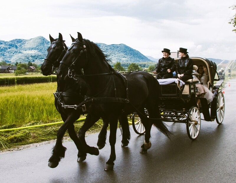 Ko si predstavljate popolno poroko, si verjetno želite nekaj edinstvenega, elegantnega in nepozabnega. Na Kmetiji Lukman v Savinjski dolini izpolnjujemo sanje mladoporočencev z ekskluzivnimi poročnimi prevozi s kočijo po Sloveniji. Predstavljajte si, kako vas ob zvoku topota konjskih kopit črna vranasta konja zapeljeta v novo skupno življenje. To ni le prevoz, ampak pravljično doživetje, ki bo vašemu poročnemu dnevu dodalo brezčasno eleganco.