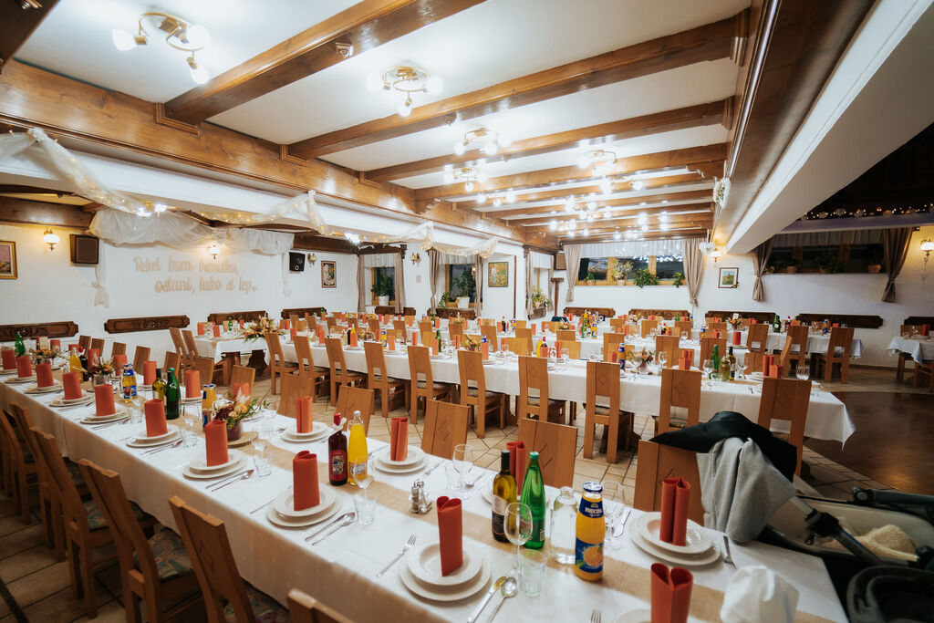 V gostišču nad poročno dvorano se nahajajo sobe, ki so med vikendi bolj primerne za tiste, ki se boste zabavali do jutranjih ur, ali pa imajo majhne otroke in jih želijo med zabavo nastaniti blizu sebe.