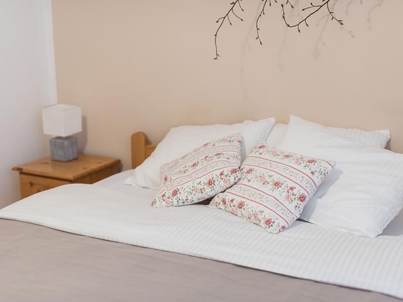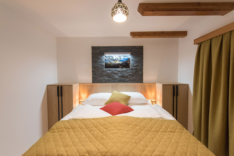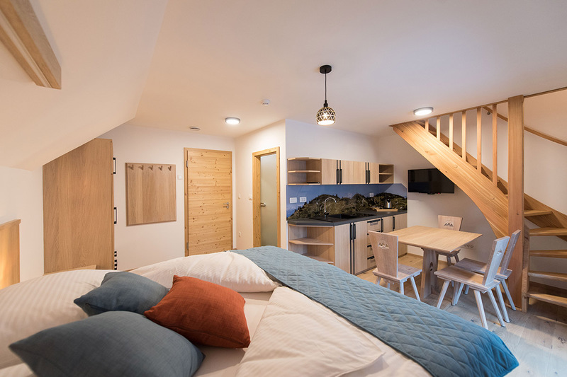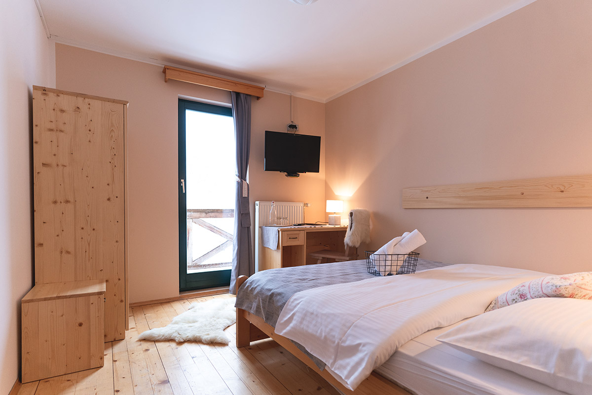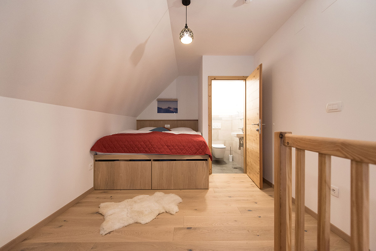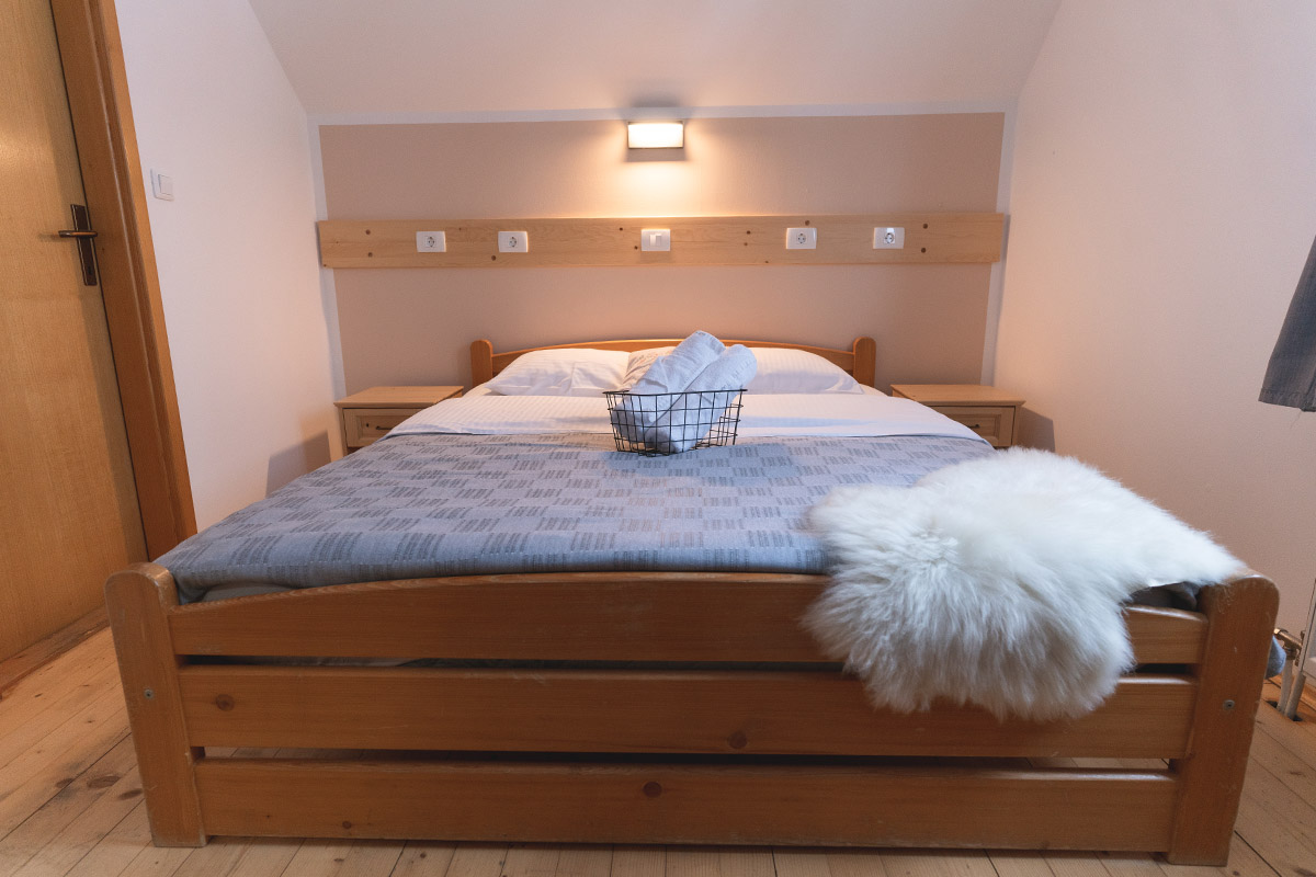 Za popolno udobje gostov smo pripravili šest dvoposteljnih sob v prvem nadstropju, štiri med njimi z dodatnim ležiščem za otroke. V drugem nadstropju se nahajajo prostorne družinske sobe, ki sprejmejo do šest oseb. Vsaka soba ima svoj balkon, kjer lahko ob jutranji kavi uživate v svežem gorskem zraku in razgledih, ki očarajo vsakogar.