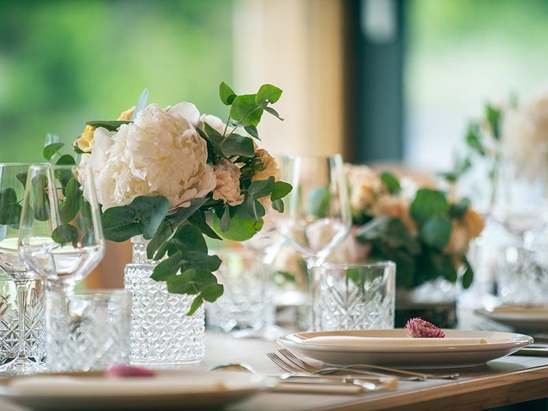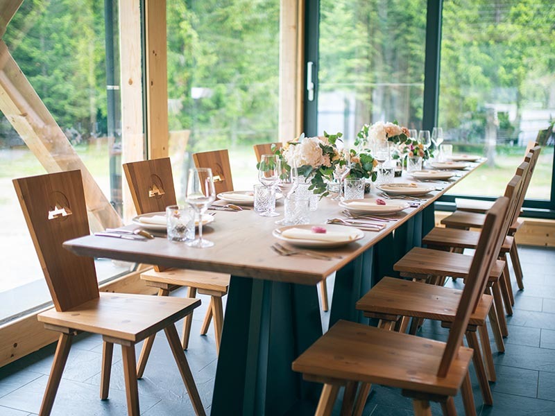 Jedilnica sprejme do 50 gostov, na letni terasi s 60 sedišči pa vas razveseli čudovit razgled na okoliške vrhove. Naši prostori so idealni za poročne obrede, praznovanja, zaključene družbe, poslovna srečanja, teambuildinge, ustvarjalne delavnice in druge posebne dogodke.