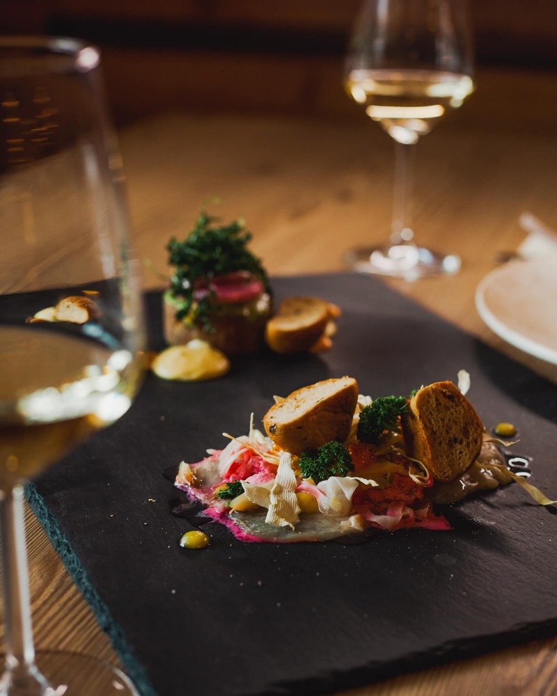 V pritličju se nahaja restavracija, ki sprejme do 120 oseb. Pri nas se lahko okrepčate z izbranimi tradicionalnimi jedmi, pripravljenimi na malce drugačen, sodoben način. Pester izbor domačih dobrot bo razvajal vaše brbončice in poskrbel, da nihče ne bo ostal lačen. Za zaključene družbe pripravljamo posebne menije ter se z veseljem prilagodimo prehranskim željam in omejitvam. Toplina domačih okusov in pristno gorsko vzdušje pričarata našim gostom nepozabno kulinarično izkušnjo.