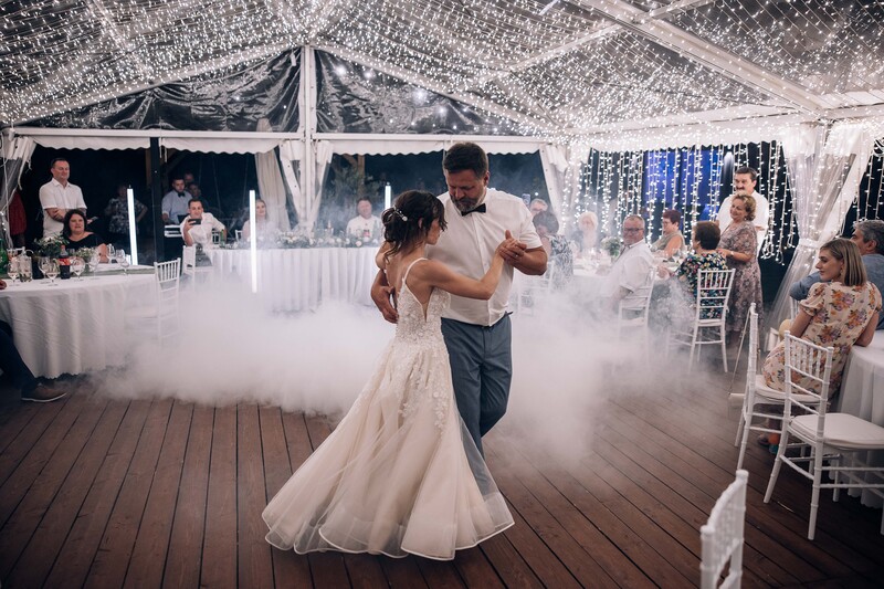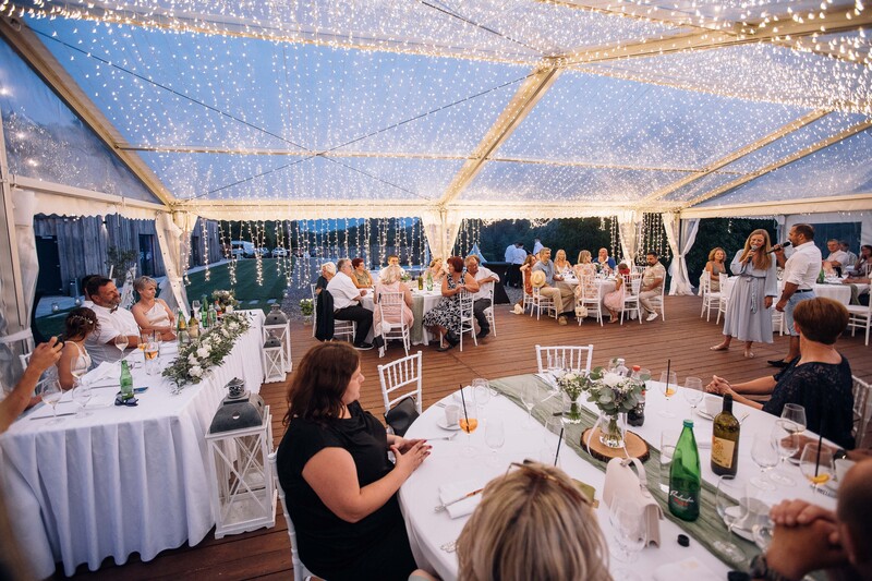 Resort je zasnovan kot celostna poročna destinacija, ki poskrbi za vsak trenutek vajinega dne. Med dišečimi grmi sivke se odvija civilni obred, slavje pa se lahko nadaljuje v skednju z dvorano ali pod šotorom, ki ga v večernih urah osvetljujejo tisoči lučk in ustvarjajo pravljično vzdušje.