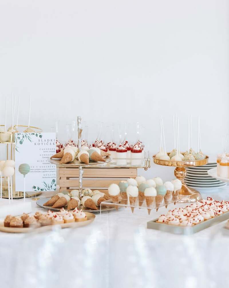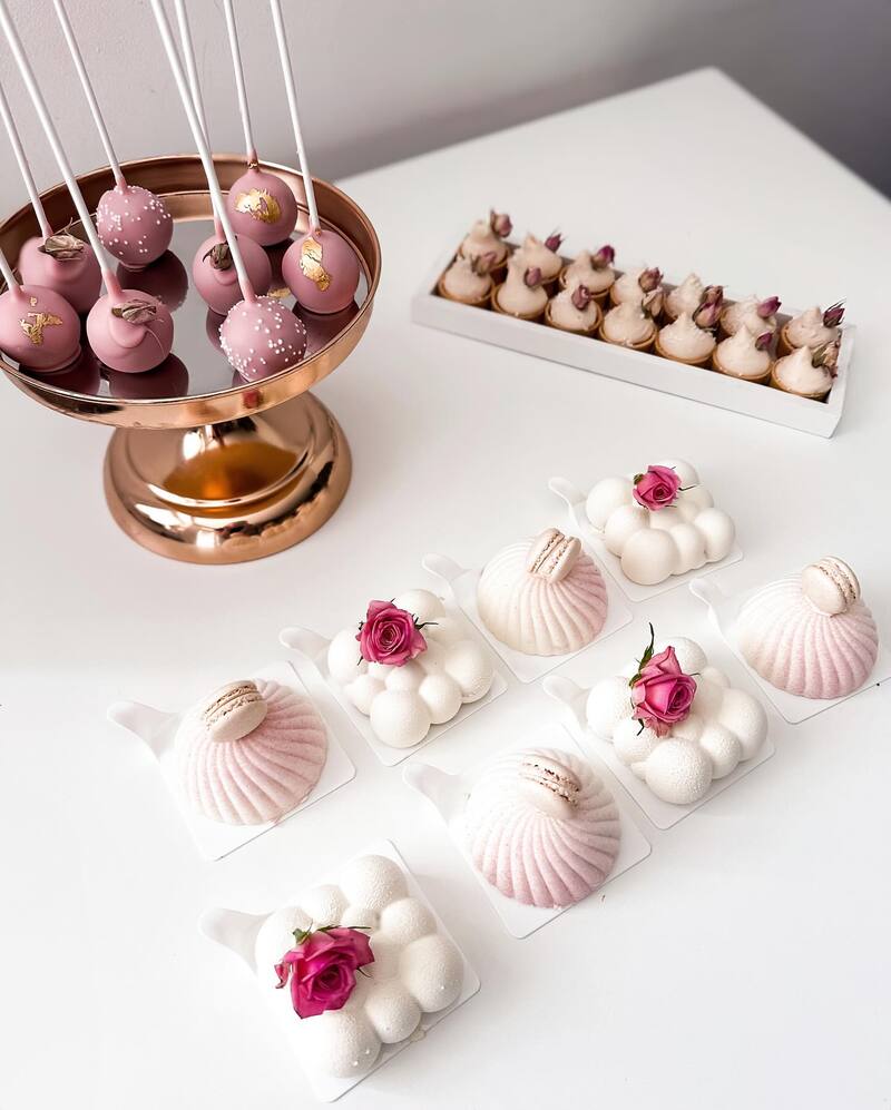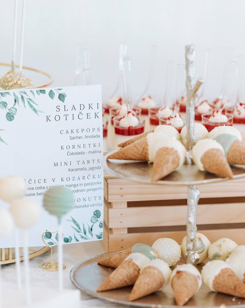 Od elegantnih mini tortic in nežnih makronov, cakepopsov, polnjenih kornetkov in košaric, sladic v kozarčkih in vse modernih petit four slaščic — vsak grižljaj je majhna, dovršena zgodba okusov in estetike.