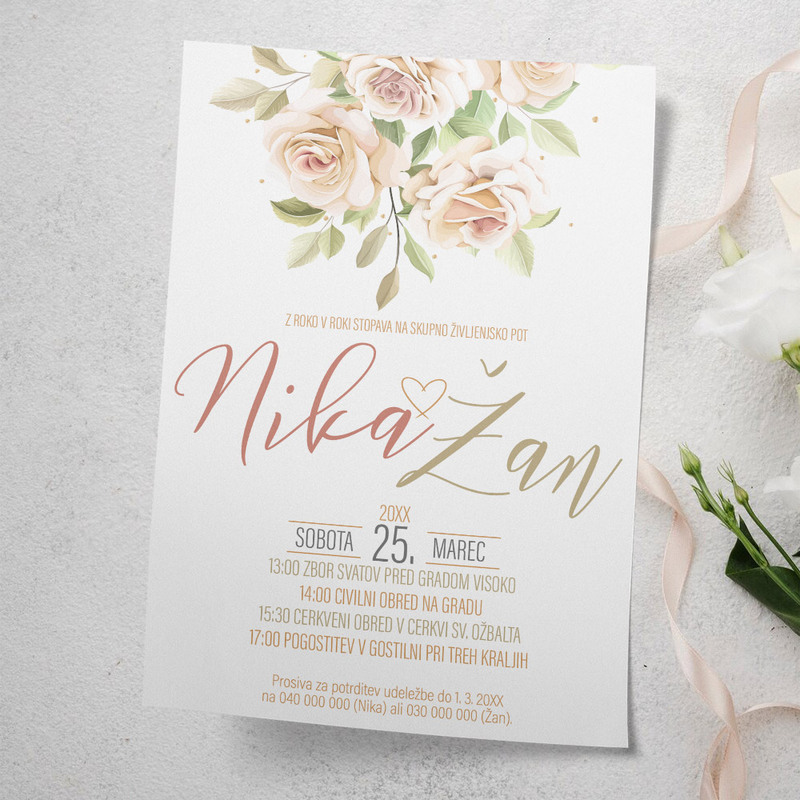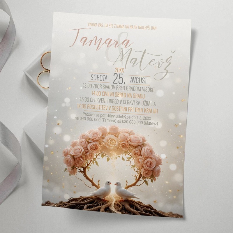 Vsako poročno vabilo ustvarimo po vajini meri – z ljubeznijo do detajlov, da odraža vajin stil in osebnost. Naj vajina zgodba zaživi že ob prvem pogledu na vabila, ki so popolnoma prilagojena vajinim željam.
